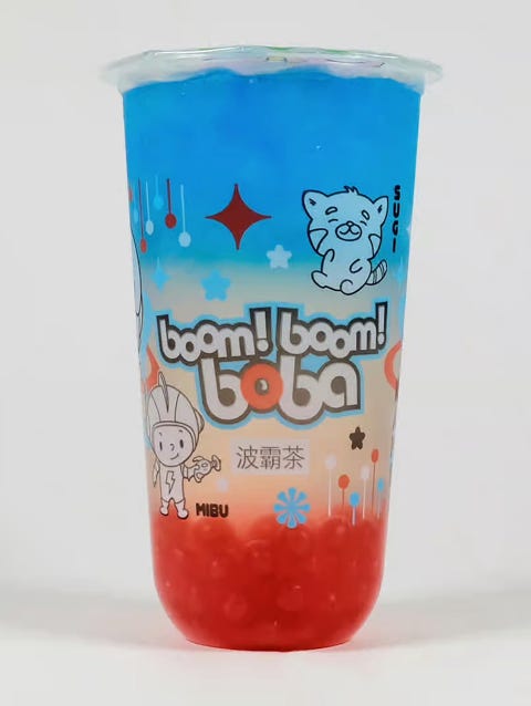 Invented in Taiwan in the 80’s, Boba Tea is a flavored milk tea with chewy, sweet tapioca balls (Boba Pearls) in the bottom. Boba Tea is served with a special wide straw to accommodate the pearls.