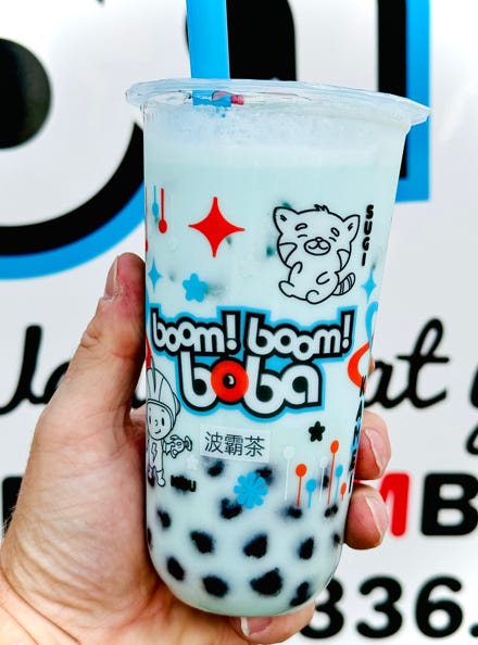 Invented in Taiwan in the 80’s, Boba Tea is a flavored milk tea with chewy, sweet tapioca balls (Boba Pearls) in the bottom. Boba Tea is served with a special wide straw to accommodate the pearls.